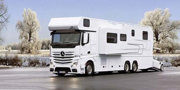 Сегодняшний пост посвящен одному из самых роскошных домов на колесах – Vario Alkoven 1200, построенному немецкой компанией Vario Mobil на 12-метровом трехосном шасси грузовика Mercedes-Benz Actros 2542 .