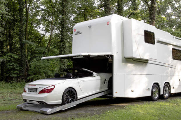 Ну и еще одной особенностью этого шикарного автодома является настоящий гараж, рассчитанный на небольшой легковой автомобиль.