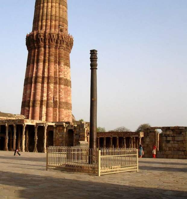 Железная колонна в Дели имеет высоту 7 метров и практически на 100% состоит из чистого железа. Подробнейший анализ состава, проведенный индийскими специалистами, показал лишь незначительное (менее 0,5%) содержание в ней никеля и фосфора. Эта колонна имеет очень интересную историю. Дело в том, что она не всегда находилась в Дели, на территории комплекса Кутб-Минар, а была перевезена туда из города Матхура. Но вот точная дата этого события неизвестна, предположительно это произошло в XI-XIII веках. Считается, что железная колонна была сооружена в 415 году в честь Чандрагупты II — величайшего правителя государства Гуптов, которое существовало на территории современной Индии. Изначально на вершине железной колонны находилась скульптура птицы, но к настоящему моменту колонна лишилась своего украшения.