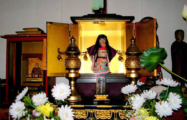 В 1938 году семья переехала на Сахалин, но побоялась взять с собой куклу. Вместо этого они принесли её в храм Маннендзи, что в городе Ивамидзава на Хоккайдо, рассказав служителю храма о ее аномальных волосах. Служитель не испугался куклы, а напротив поместил её в специальный деревянный ящичек на видном месте.