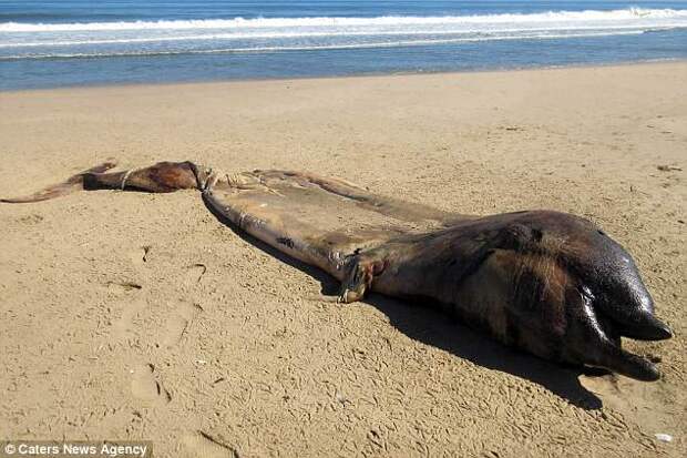 На прошлой неделе на песчаном пляже Намибии (Юго-Западная Африке), к которому примыкает национальный парк Дороб, были обнаружены разлагающиеся останки 7-метрового китообразного существа. Поначалу ни один из ученых, получивших доступ к останкам, не мог сказать, к какому виду относится это животное.