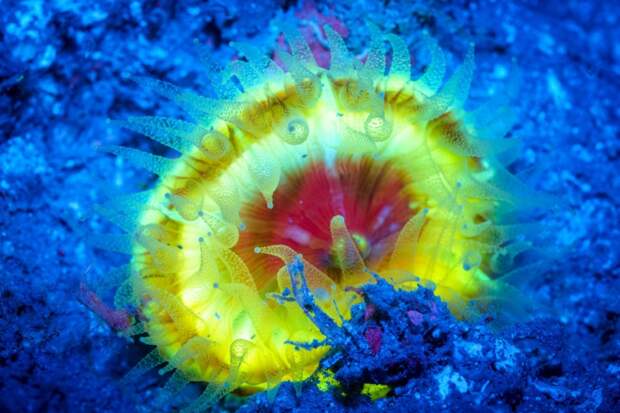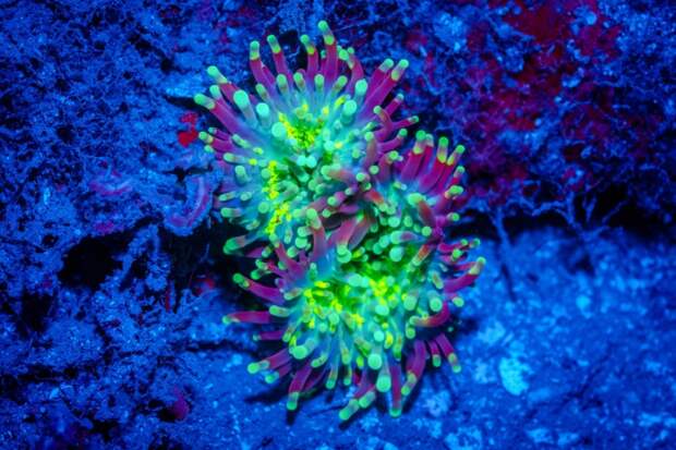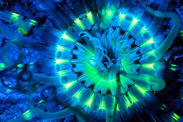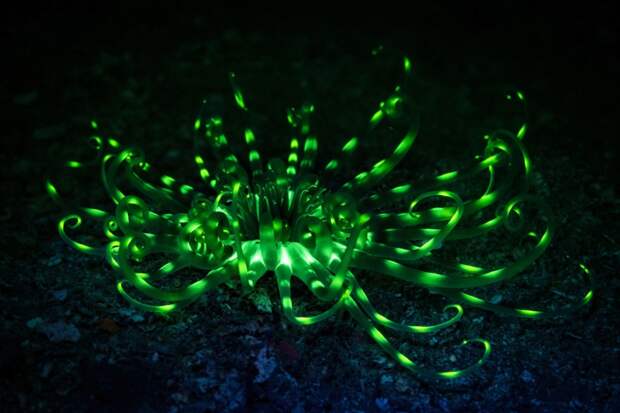 Причем стоит отметить, что коэффициент полезного действия живого свечения необычайно велик и достигает 80-90 процентов. В природе биолюминесценция используется животными как средство общения, для маскировки или отпугивания, а так же для привлечения добычи или брачных партнеров.Морской биолог и подводный фотограф Саймон Пирс (Simon Pierce) из Новой Зеландии делает просто фантастические снимки неоновых морских обитателей. Неподалеку от острова Нуси-Сакатия (Мадагаскар) мужчине удалось запечатлеть целый мир светящихся существ, заставляющих ощутить себя персонажем фильма «Аватар».