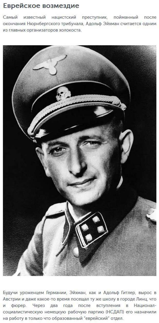 Далеко не все преступники Третьего рейха были наказаны сразу после окончания войны в ходе знаменитого Нюрнбергского процесса. Многим из них удалось скрыться в далеких странах и жить там под новыми именами, однако правосудие настигало их и там. Давайте вспомним самых известных «палачей» нацистской Германии, которые были наказаны за свои деяния спустя годы и десятилетия.