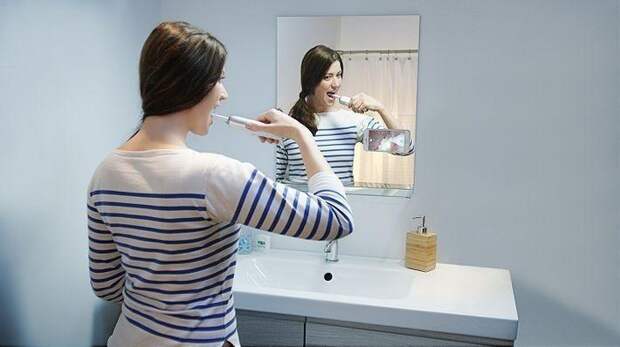 Камера на щетке будет транслировать видео на твой смартфон, что позволит увидеть самые труднодоступные места.