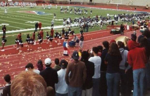 ВСуществует версия, что такая традиция появилась после выхода на экраны фильма «Шоу ужасов Рокки Хоррора» (The Rocky Horror Picture Show, 1975 год), в котором в одной из сцен болельщики также забросали поле хлебом. Другие знатоки традиций и истории университета считают, что обычай связан со временами знаменитого Сухого закона. В период примерно с 1920 по 1933 год согласно этому закону жителям страны было запрещено распивать спиртные напитки, поэтому, воспользовавшись игрой слов, болельщики вместо пения застольных тостов с бокалами и бутылками в руках начали кидаться ломтиками тостового хлеба.